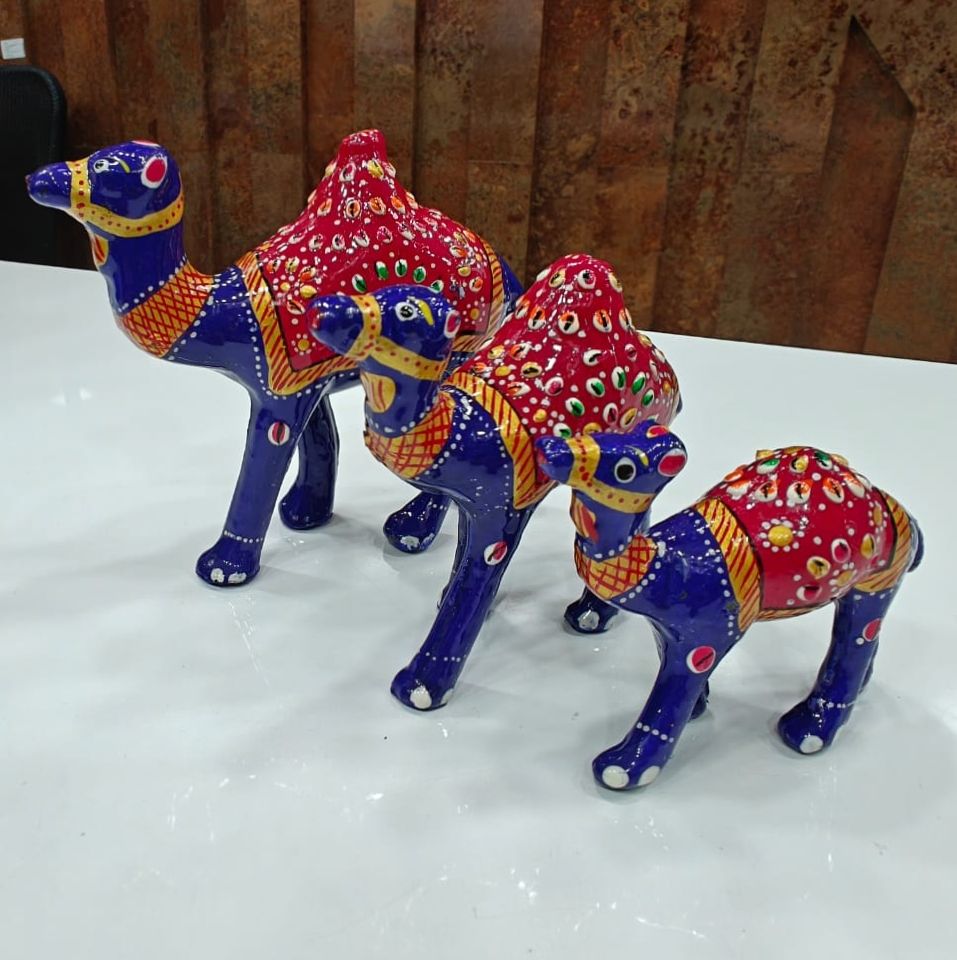 Add a splash of vibrant culture to your space with this colorful camel family set. Hand-painted with intricate details, these figurines capture the essence of traditional art, bringing a lively and festive touch to your decor.
