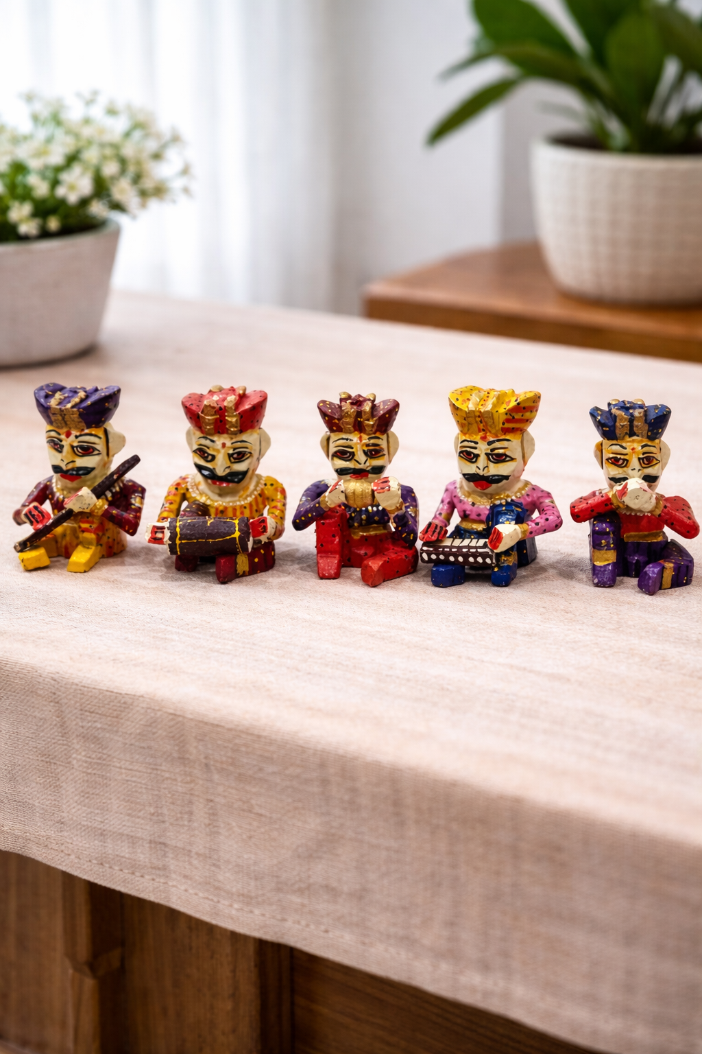 Hand‑painted Babla musicians in traditional Rajasthani attire