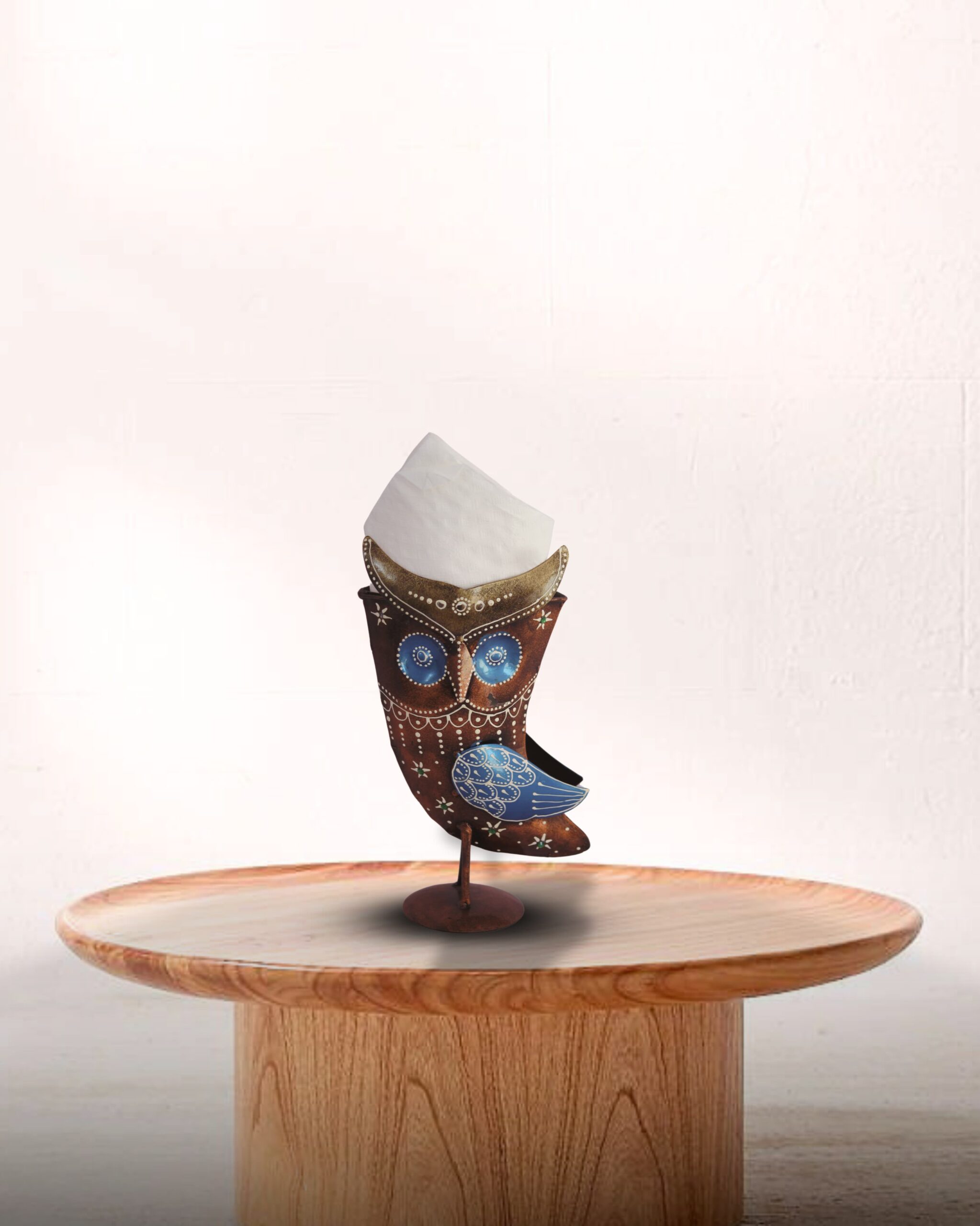 Add a playful yet elegant touch to your space with this charming Handcrafted Metal Owl Stationery or Tissue Holder. Crafted by skilled artisans, this holder is ideal for storing stationery items tissues or napkins in style—whether placed on your dining table, coffee table, office desk, study table or kitchen counter.