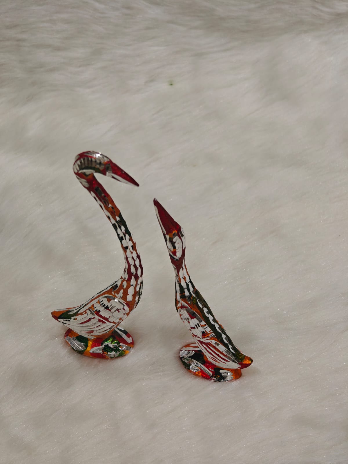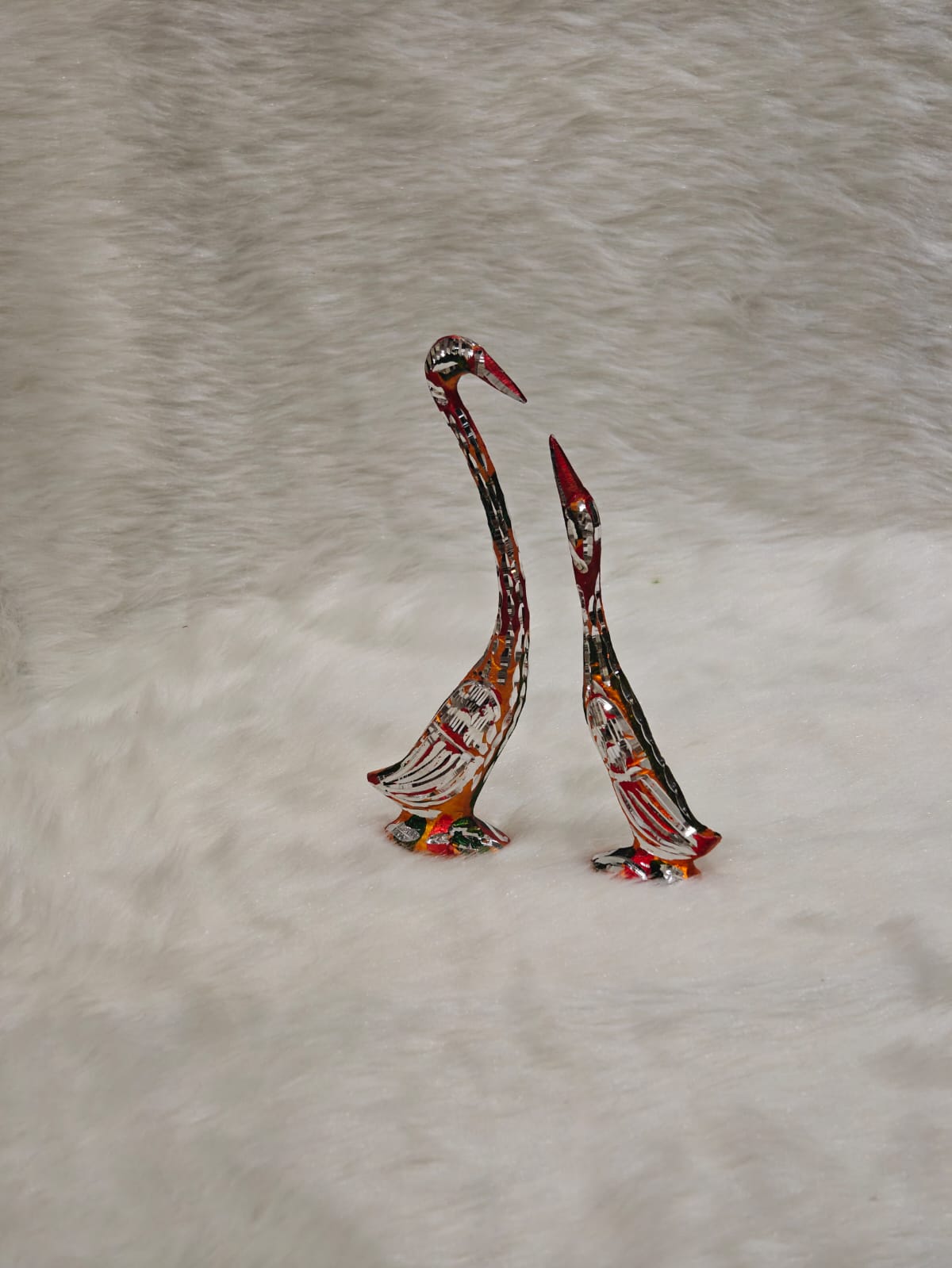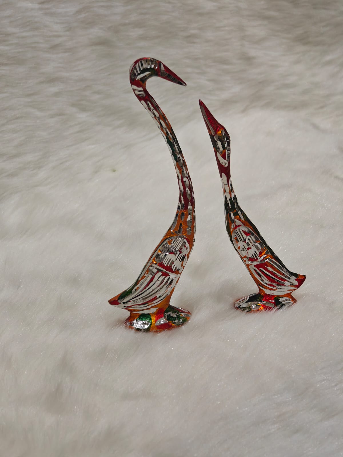 A stunning pair of delicately designed saras, made from premium metal and hand-painted with vibrant, intricate patterns. Their elegant posture and artistic detailing make them an eye-catching addition to your home or office décor. Perfect as a decorative accent, collectible, or unique gift for loved ones.