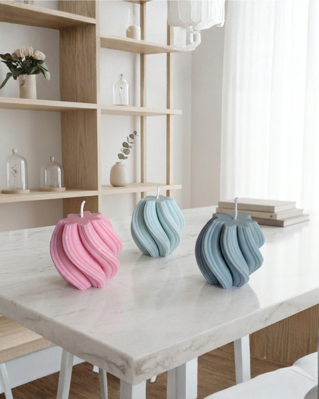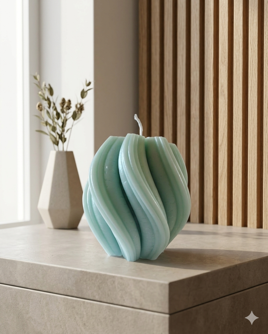 The Seafoam Spiral Wave Candle is designed as a true statement piece for contemporary interiors. Its flowing spiral form creates the illusion of soft waves wrapping around the candle, giving it a dynamic, sculptural presence even when unlit. The calm seafoam‑green shade pairs beautifully with neutrals, light woods and stone surfaces, adding colour without overpowering your space.