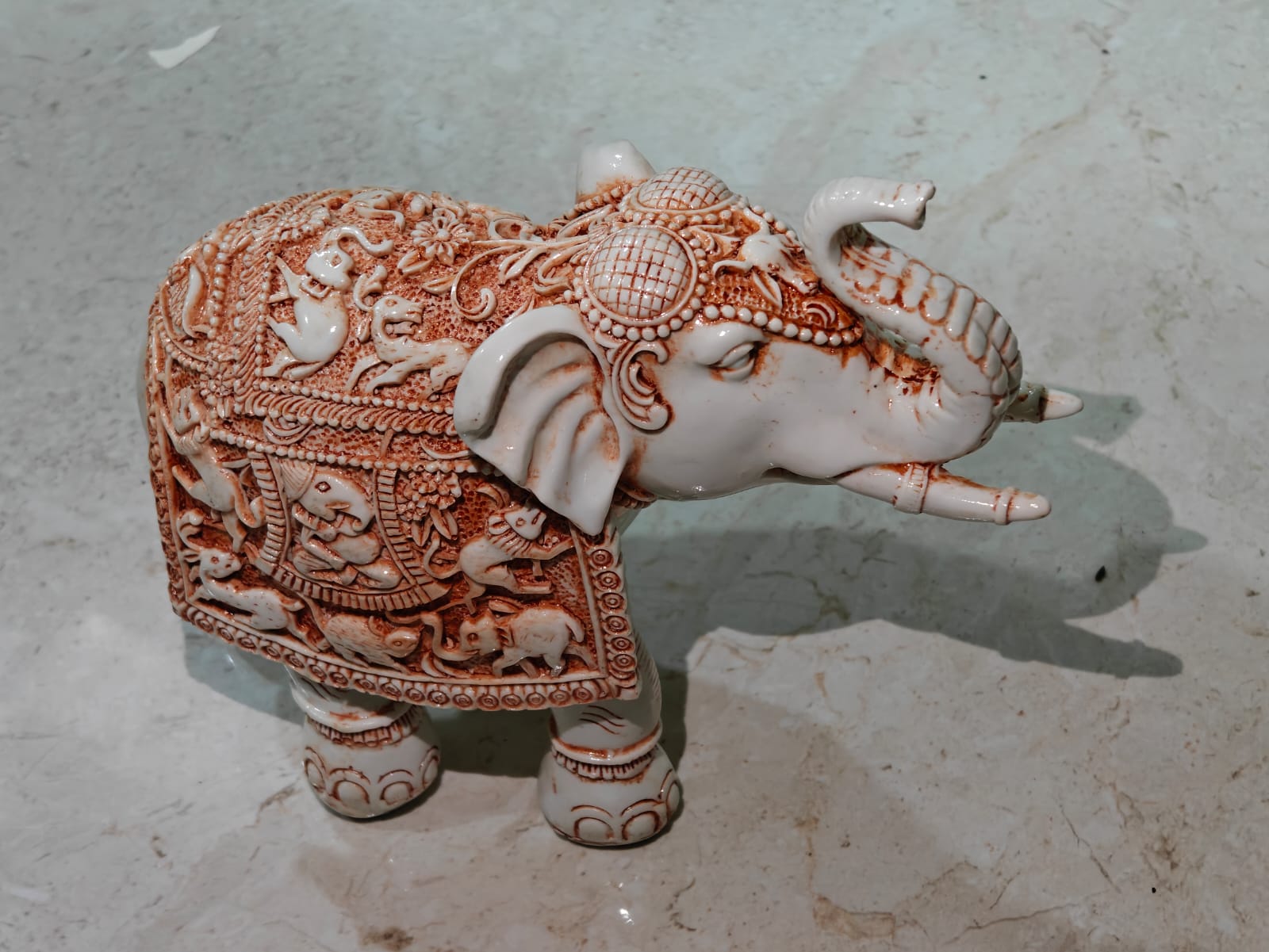 Wipe the marble surface with a soft, dry cloth to keep the shine bright. The durable stone finish keeps your elephant idol looking elegant for years.
