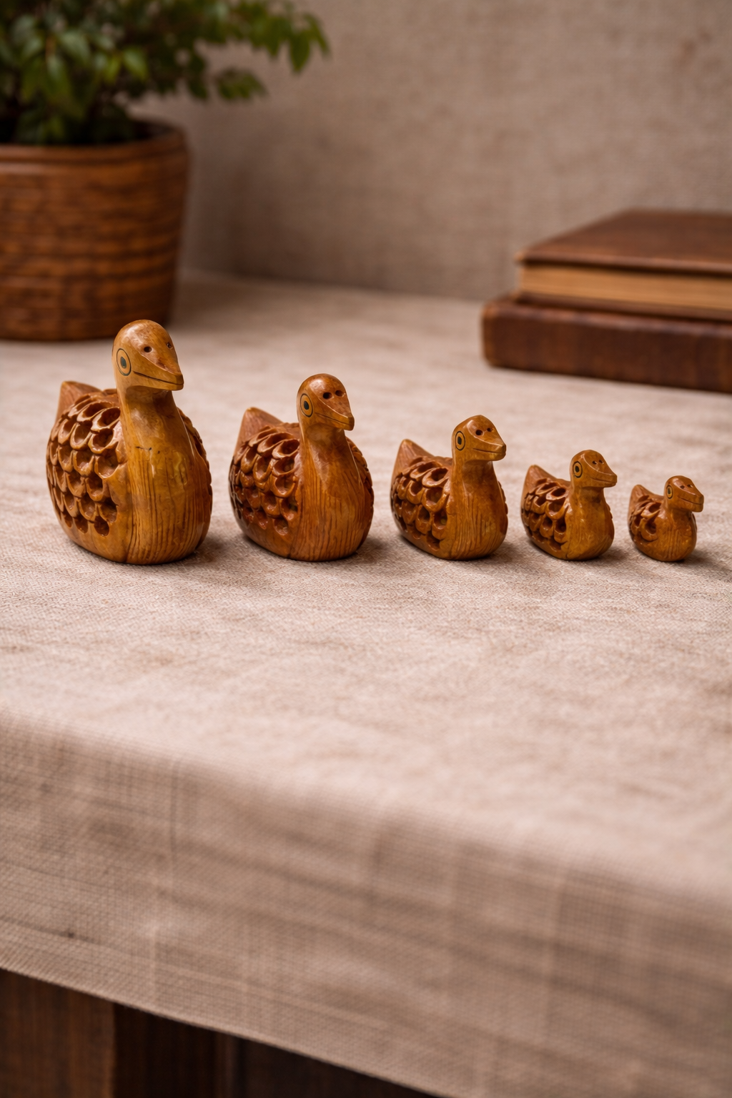 Bring tranquil waterside charm with these hand‑carved serene drift duck figurines. Crafted with Kadamb wood’s fine grain for delicate lattice carving, each duck reveals a hidden baby duck inside through intricate cutwork. The family set features mama, papa, and ducklings gliding gracefully, perfect for creating peaceful vignettes on shelves, desks, or windowsills. Choose the full family set for maximum storytelling, or individual ducks for minimalist accents, corporate zen gifts, or nursery décor. Sustainable craftsmanship celebrates nature’s serenity in every detailed feather.