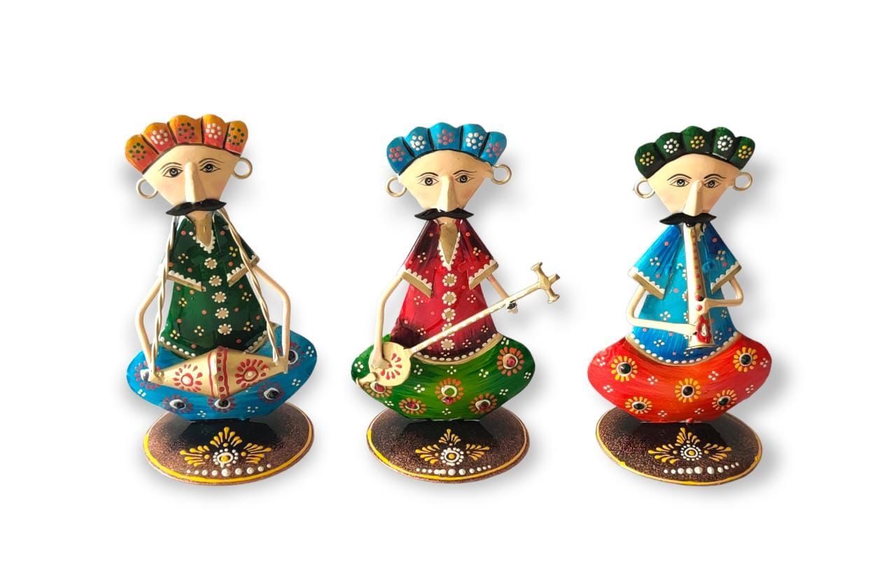 Add color and culture with the Bholu musician figurine set. Three handcrafted metal musicians, painted in lively Rajasthani style, stand out on any table or shelf. Place them in living rooms, offices, or entryways, and instantly create a welcoming scene. Because every figurine features a unique musical instrument, they highlight India’s rich tradition.
