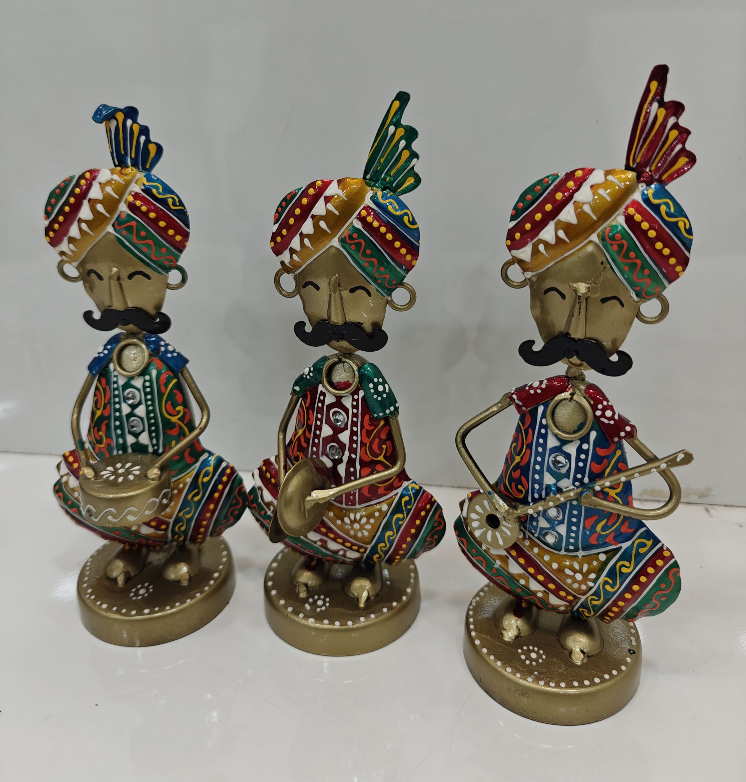 Add a touch of vibrant Rajasthani culture to your home with this charming set of three handcrafted musicians. Each figurine, adorned in traditional attire, showcases intricate detailing and vibrant colors, reflecting the rich heritage of Rajasthan. Perfect for enhancing your décor with a splash of color and cultural elegance.